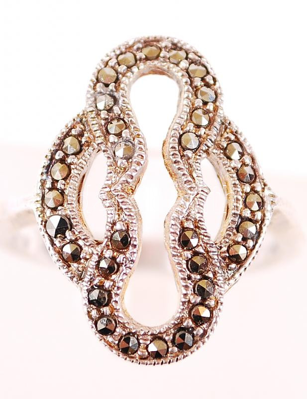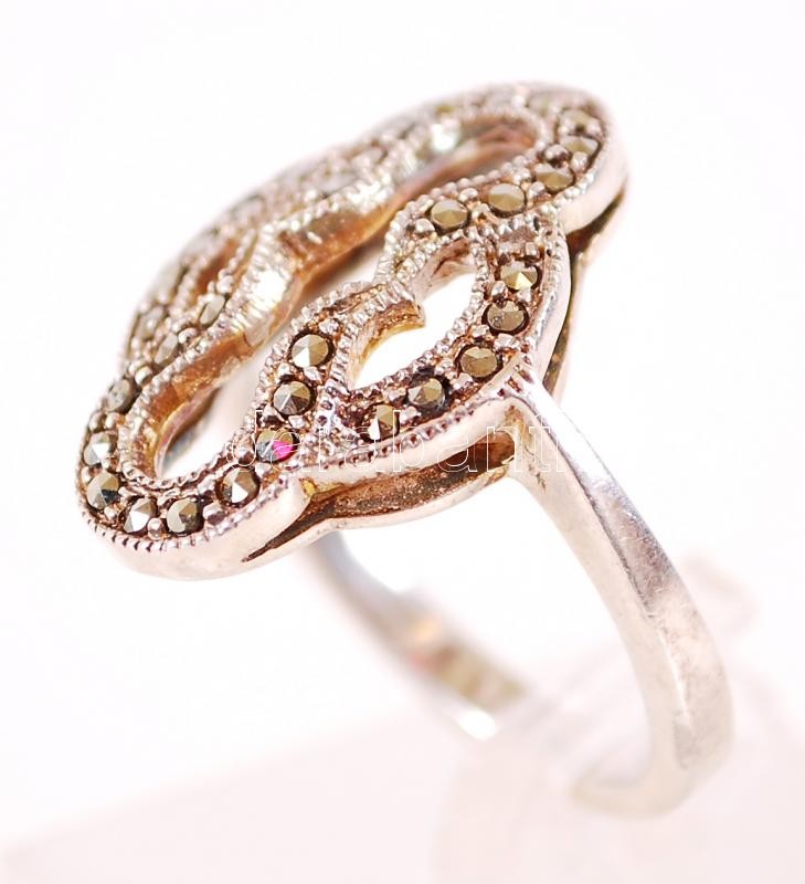 Art deco stílusú, ezüst (Ag) gyűrű markazitokkal /