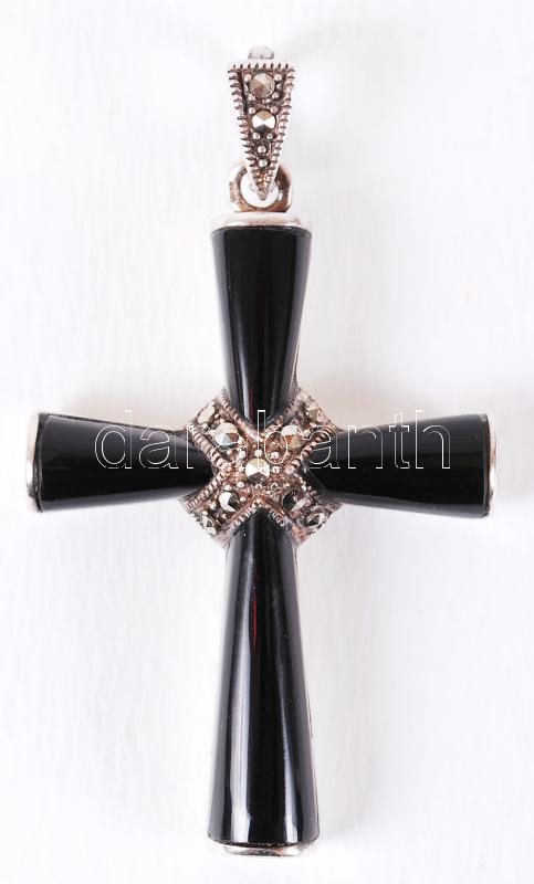 Ónix - ezüst kereszt medál / Onyx silver crucifix 4x3 cm