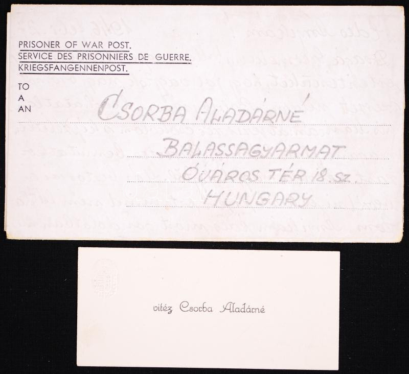 1946 Magyar hadifogoly levele angol hadifogságból, családjának, + a címzett névjegykártyája