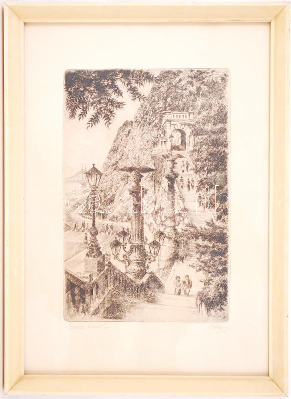 Tichy Kálmán (1888-1968): Gellért lépcső. Rézkarc, papír, jelzett, 29×...
