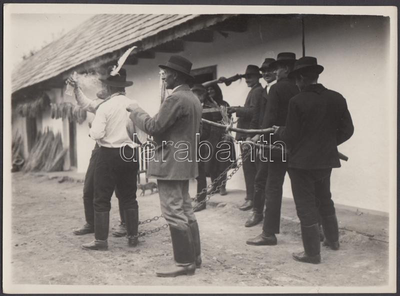1920-1930 Kankowszky Ervin Bacchus: Népszokások. Vintage alkotás, pecséttel ellátott kópia, 18x24 cm