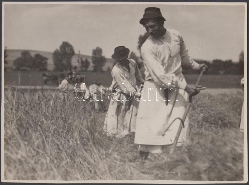 1923 Kankowszky Ervin (1884-19445): Aratás. Vintage fotó, hátoldalán szerzői pecséttel, 18x24cm