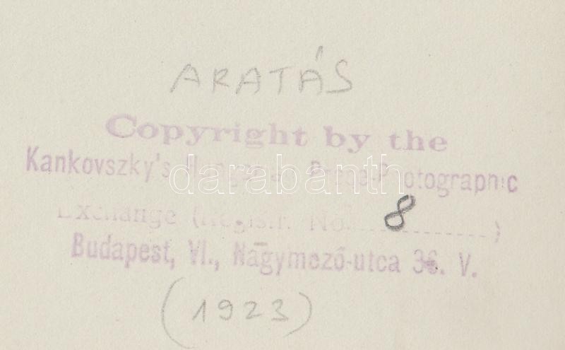1923 Kankowszky Ervin (1884-19445): Aratás. Vintage fotó, hátoldalán s...