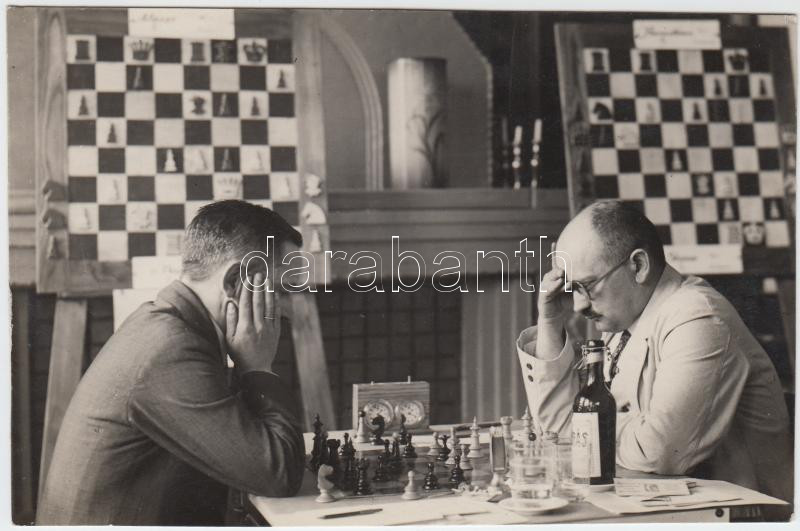 Carl Ahues and Árpád Vajda on the Internation Chess Championship at Kecskemét, by István Kerny, 10x15,5cm