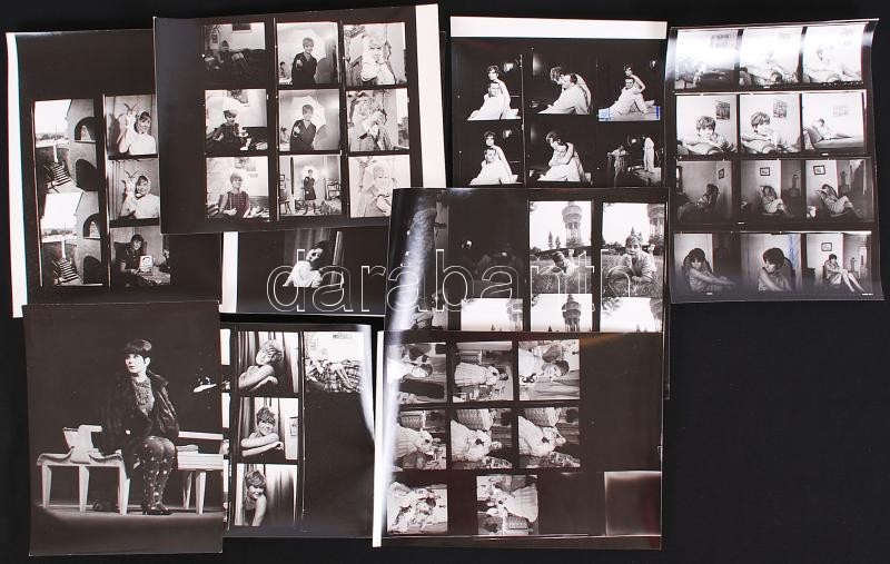 Description: 1970-80 88 felvétel Ruttkai Éva (1927-1986)Kossuth-díjas színásznőről. A képek többsége 6x6 cm-es negatívok kontakt másolata; jelmezben és civil ruhában, színpadon és lakásban, továbbá szabadtéren