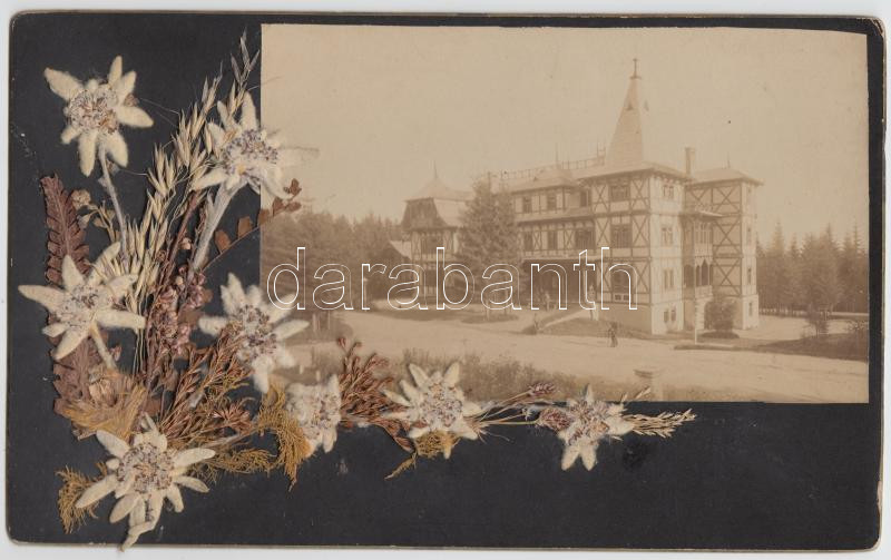 cca 1890 Magas Tátra Tártafüred keményhátú fotó havasi gyopárral 23x15 cm