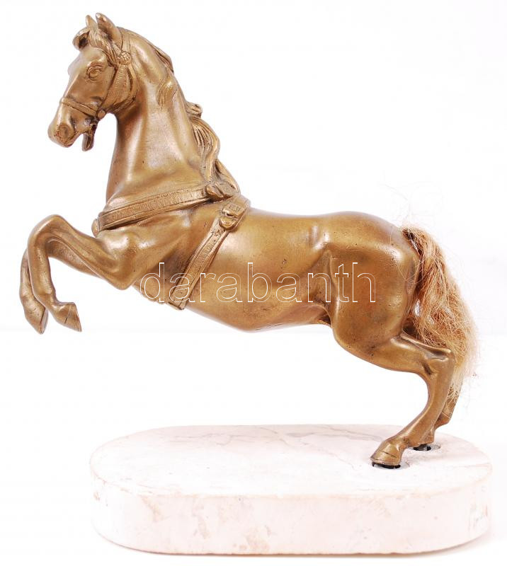 Ágaskodó ló. Bronzírózott spiáter, mészkő talapzaton, m:21 cm, h:20 cm