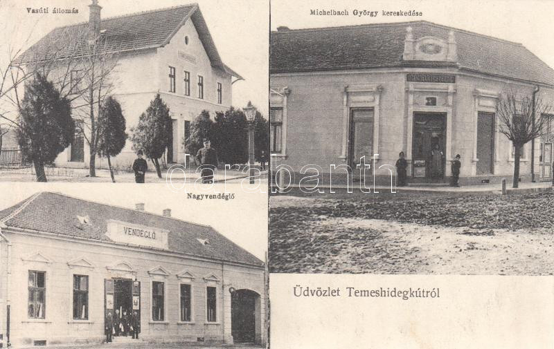 Temeshidegkút Nagyvendéglő, Michelbach György kereskedése / restaurant, shop, railway station (wet damage)