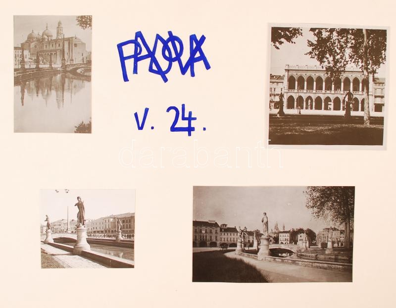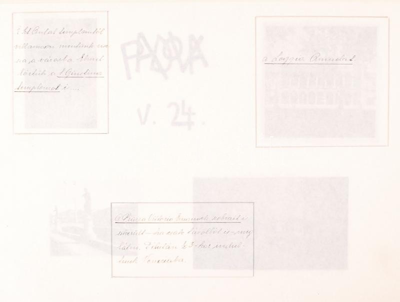 Description: 1933 Római zarándokút. Az Országos Katholikus Szövetség szervezésében lezajlott út fénykép dokumentációja. 56 kemény táblán (31x23 cm) kb 250 feliratozott fotó. A déli pályaudvari indulástól. Főleg olasz városképek. Rendkívül igényes hímzett, selyembélésű fényképtartóban. Jó állapotban /