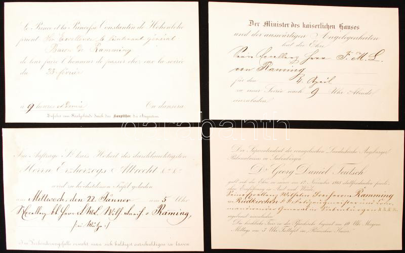 4 invitations by various German aristocrats in German and French, adressed to Baron Wilhelm Ramming von Riedkirchen, Austrian general.