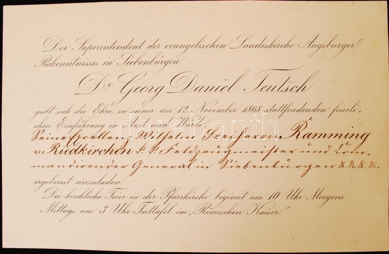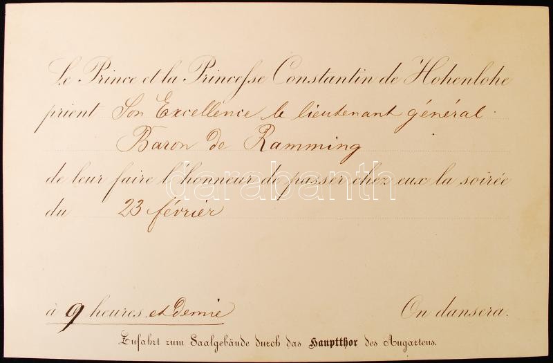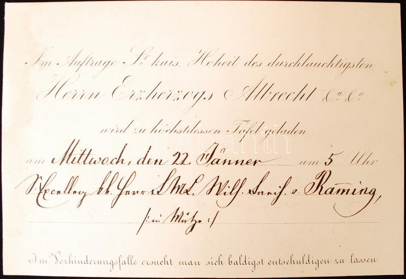 cca 1850-1876 4 db német és francia nyelvű meghívó Wilhelm Ramming von... https://www.darabanth.com/en/19-Major-auction/19.1/Art-and-collectibles/Historical-documents-manuscripts~6522/cca-1850-1876-4-db-nemet-es-francia-nyelvu-meghivo-Wilhelm-Ramming-von-Riedkirchen-baro-oszt~II933769