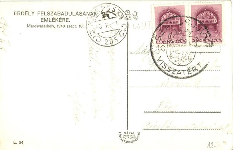 1940 Marosvásárhely, bevonulás / entry of the Hungarian troops 'vissza' So. Stpl