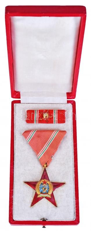 Hungary 1949. "Medal of Merit of the Hungarian Peoples Republic Gold class" enamelled gilt Br decoration on ribbon, with thin ribbon and miniature in original case C:AU