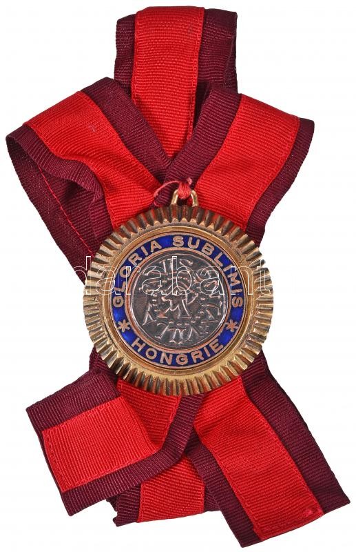 1976- "Gloria Sublimis Hongrie - Visonta Villa" gyöngyösi borrend aranyozott, zománcozott jelvénye nyakszalaggal (63mm) T:2