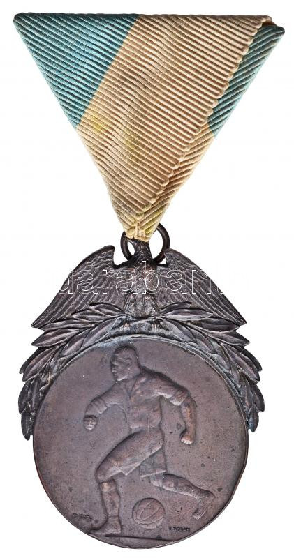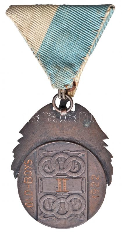 Description: Berán Lajos (1882-1943) / Scheid G.A. (Ezüstárú és Éremgyár) 1922. "Old-Boys II" bronz labdarúgó díjérem mellszalagon (55x42mm) T:2-