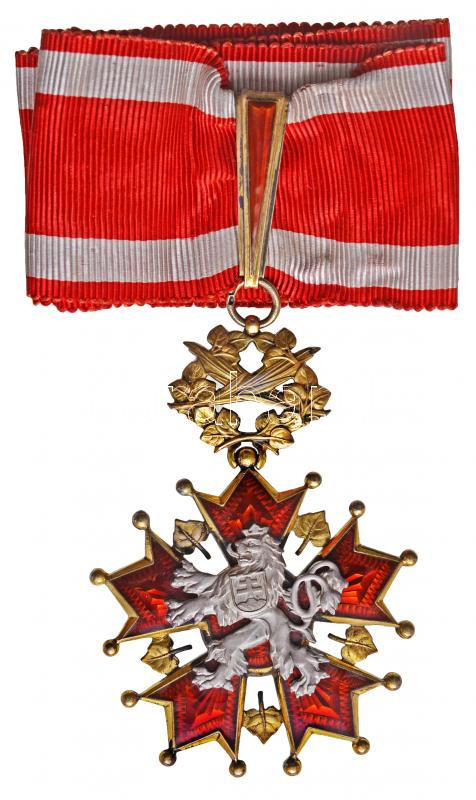 Czechoslovakia 1922. "Order of the White Lion, Commander`s Cross for Civil (3rd Class)" hallmarked gilt, enamelled silver decoration on neck badge, on the ring with makers mark "KK" (Karnet&Kysely, Praha) C:XF