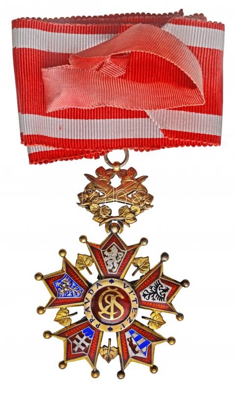 Csehszlovákia 1922. "Fehér Oroszlán Rend, III. osztály civilek számára" jelzett aranyozott, zománcozott ezüst kitüntetés nyakszalagon, karikán "KK" (Karnet&Kysely, Prága) gyártói jelzéssel T:2