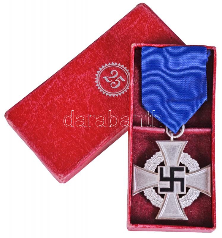 Description: Német 3. Birodalom 1938. "Szolgálati Érdemérem 2. osztálya 25 éves szolgálat után" ezütözött fém kitüntetés eredeti mellszalagon, adományozói tokban T:2