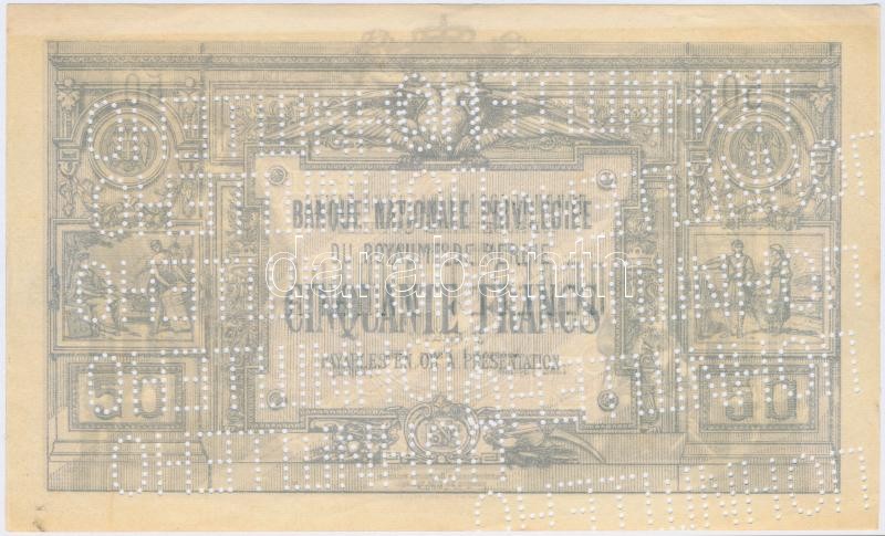 Szerbia 1886. 50D aláírás nélkül, ismeretlen cirill "PONISTENO (érvénytelenítve)" perforációkkal T:I- (hajtatlan) R!