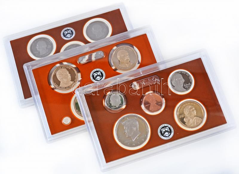 Description: Amerikai Egyesült Államok 2012S 1c-1/2$ (5xklf) + 1/4$ (5xklf) + 1$ (4xklf), forgalmi szett eredeti tokokban és csomagolásban tanúsítvánnyal T:PP