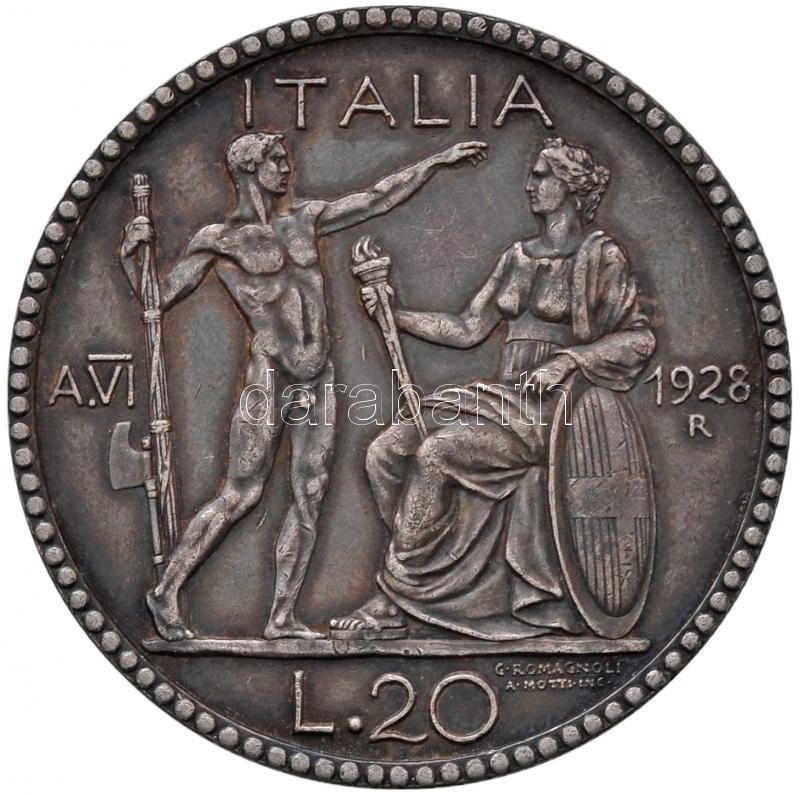 Olaszország 1928R 20L Ag "III. Viktor Emánuel" Róma (15.02g) T:2- apró... https://www.darabanth.com/en/19-Major-auction/19.1/Numismatics/Foreign-coins~6506/Olaszorszag-1928R-20L-Ag-III-Viktor-Emanuel-Roma-1502g-T2-apro-ph-3Cbr3EItaly-1928R-20-L~II921767
