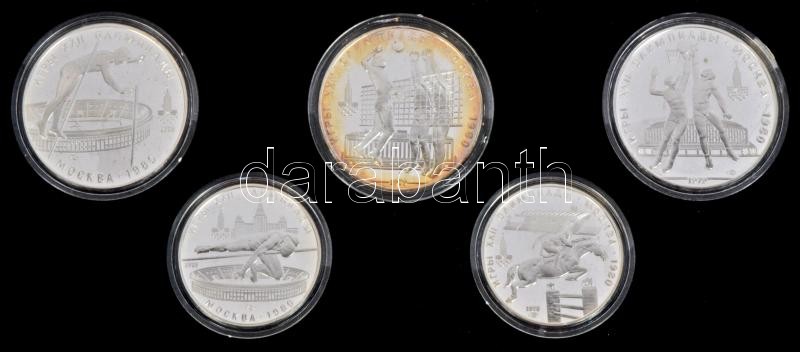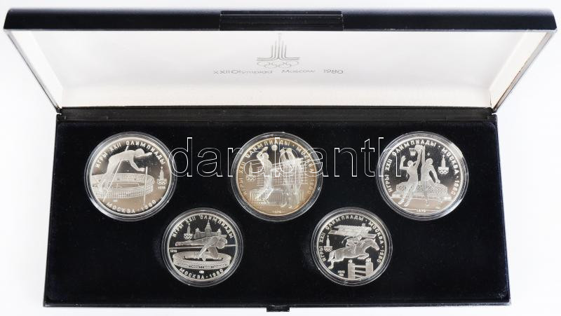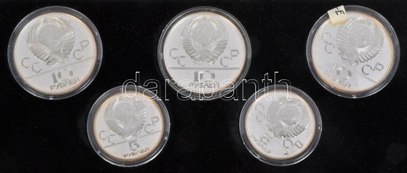 Szovjetunió 1978. 5R Ag (2xklf) "Magasugrás, Díjlovaglás" + 1978-1979. 10R Ag (3xklf) "Rúdugrás,Röplabda,Kosárlabda" "Moszkvai olimpia 1980" érem szett dísztokban T:PP