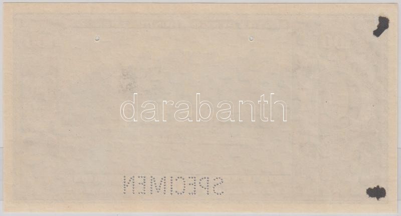 1926. 100P Lipcsében készült próbanyomat hátlapja, előlap üres, "SPECIMEN" perforációval, 2 kis lyukkal érvénytelenítve, ismeretlen vízjellel T:II ragasztásnyom a hátoldalon, tűlyukak