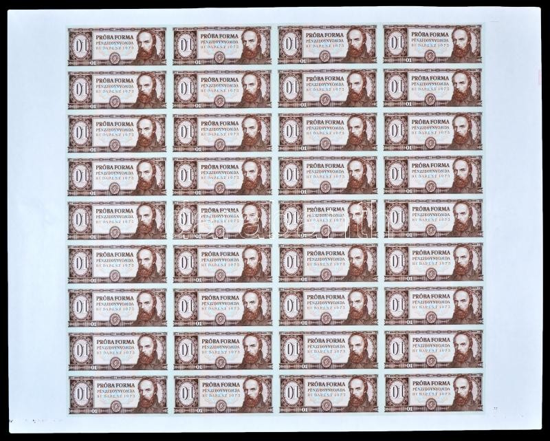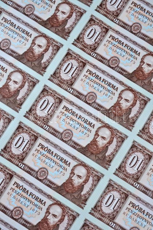 Hungary 1973. 01 "PRÓBA FORMA" unissued banknote design with only reddish front printers proof with green basic print in sheet of 36 C:AU
