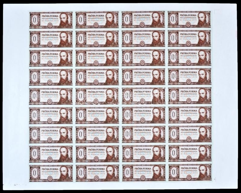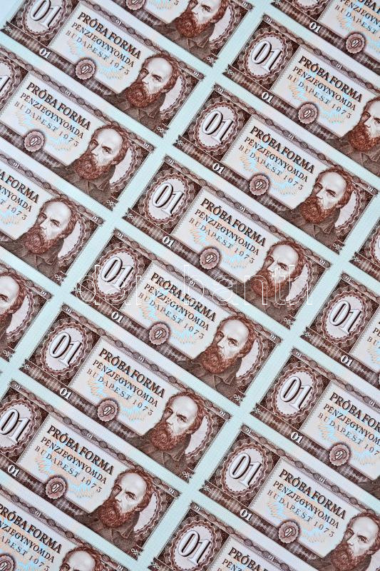 Hungary 1973. 01 "PRÓBA FORMA" unissued banknote design with only reddish front printers proof with green basic print in sheet of 36 C:AU