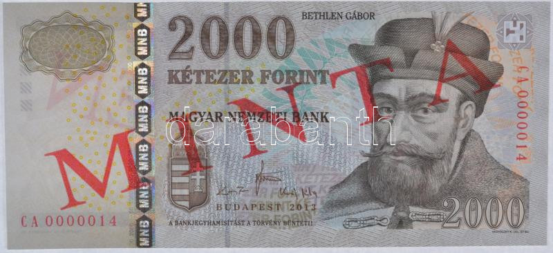 Hu... https://www.darabanth.com/en/19-Major-auction/19.1/Numismatics/Hungarian-Banknotes~6497/2013-2000Ft-MINTA-felulnyomassal-CA-0000014-sorozatszammal-TI-3Cbr3EHungary-2013-2000-Forin~II917071
