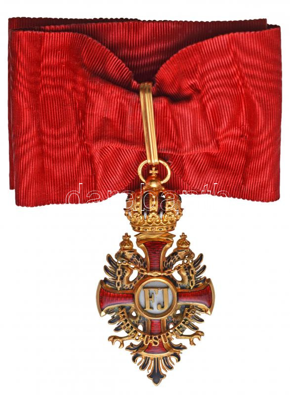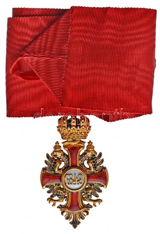 1849. "A Ferenc József-rend középkeresztje" aranyozott, zománcozott ki... https://www.darabanth.com/en/19-Major-auction/19.1/Numismatics/Military~6513/1849-A-Ferenc-Jozsef-rend-kozepkeresztje-aranyozott-zomancozott-kituntetes-voros-nyaksza~II936431