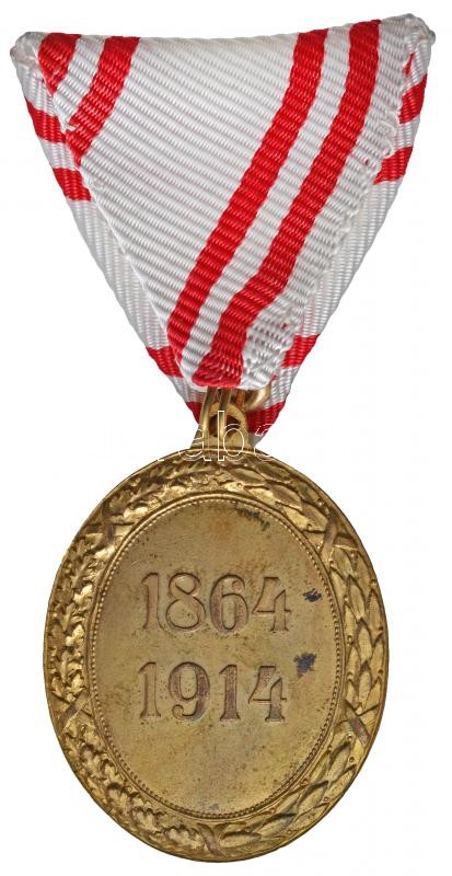 Description: 1914. "Vörös Kereszt Bronz Díszérme hadidíszítménnyel" aranyozott, zománcozott bronz kitüntetés nem eredeti mellszalagon, függesztőkarika hiányzik T:2