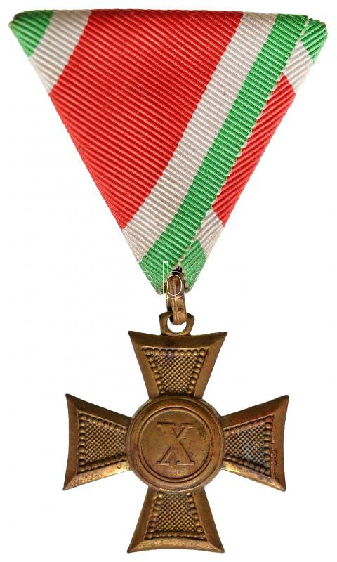 Hungary 1923. "Distinction for Long Service for the Soldiers, 2nd Class" decoration on ribbon, with "H.M.10" mark on the backs side C:XF