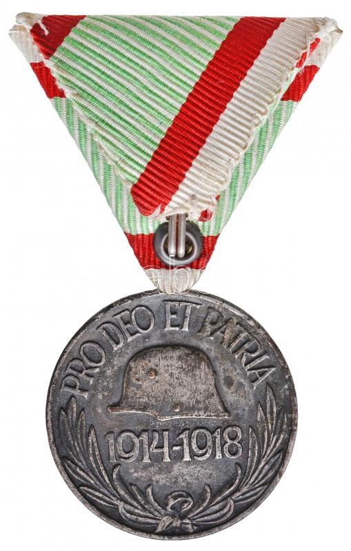Hungary 1929. "Hungarian Commemorative War Medal with swords and a helmet" silver plated bronze decoration, "BRONZ" hallmark on the edge, with ribbon C:VF