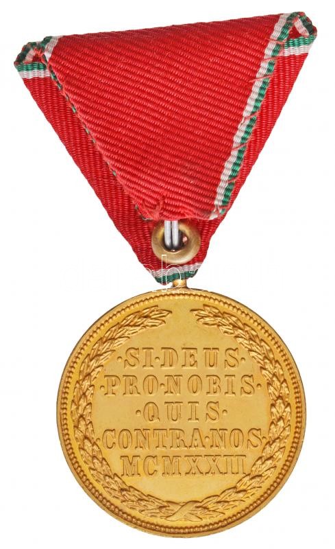 Hungary 1939. "Hungarian Bronze Medal of Merit on wartime ribbon / SI DEUS PRONOBIS QUIS CONTRA NOS MCMXXII" gold plated bronze decoration with ribbon C:AU