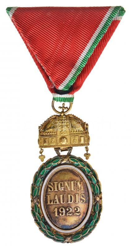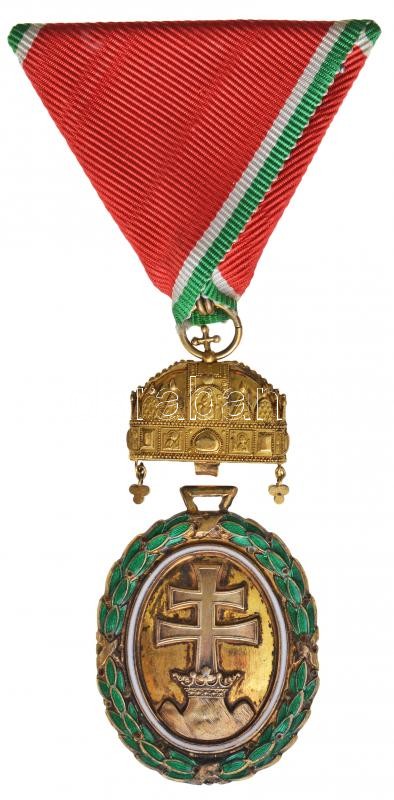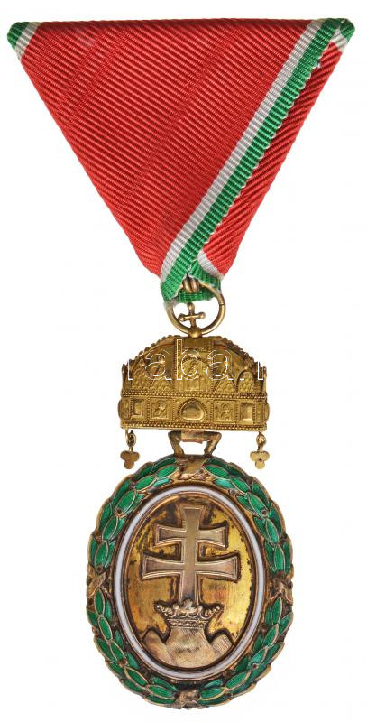 ~1930. "Magyar Koronás Nagy Aranyérem hadiszalagon, kisdíszítménye" ar... https://www.darabanth.com/en/19-Major-auction/19.1/Numismatics/Military~6513/7E1930-Magyar-Koronas-Nagy-Aranyerem-hadiszalagon-kisdiszitmenye-aranyozott-zomancozott-Br~II936291