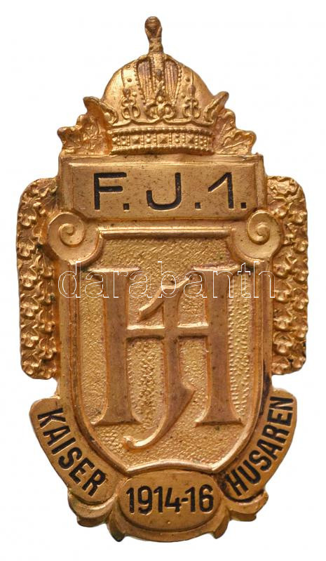 https://www.darabanth.com/en/19-Major-auction/19.1/Numismatics/Military~6513/Osztrak-Magyar-Monarchia-7E1914-1916-1-Csaszar-Huszarezred-aranyozott-fem-sapkajelveny-39x~II918035