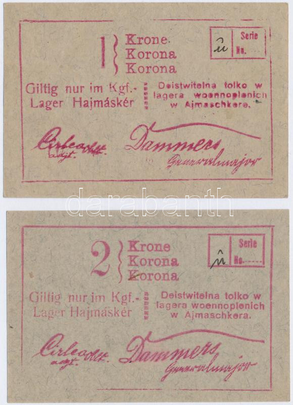 Hungary / Hajmáskér / prison camp 1914. 1 Korona + 2 Korona 1st issue C:UNC,XF (one gluemarked on the back)