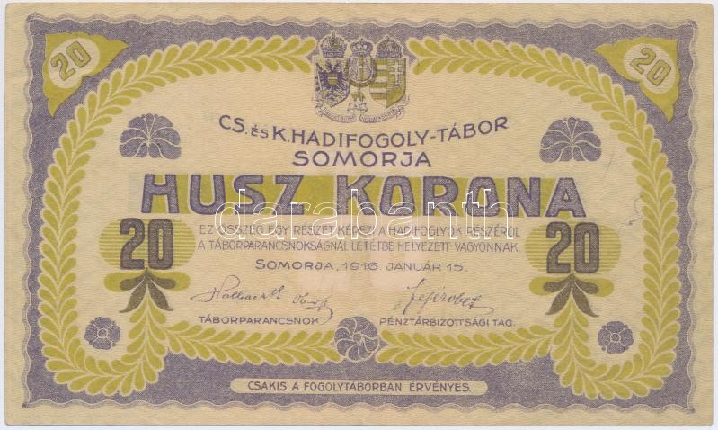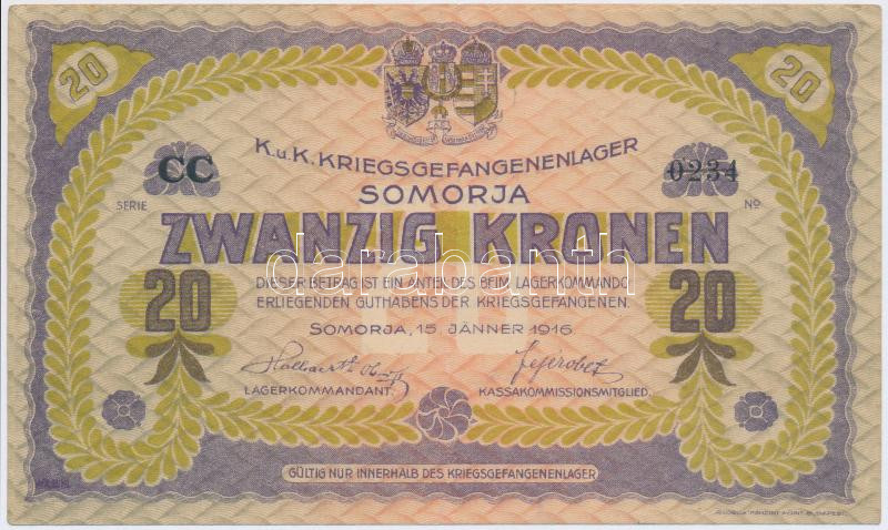 https://www.darabanth.com/en/19-Major-auction/19.1/Numismatics/Shares-tickets-emergency-coins-and-notes~6540/Somorja-hadifogolytabor-19160115-20K-ket-nagybetus-sorozat-arab-sorszam-TII--3Cbr3EHungary~II932581