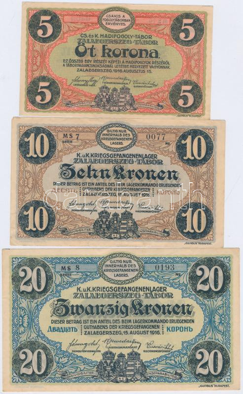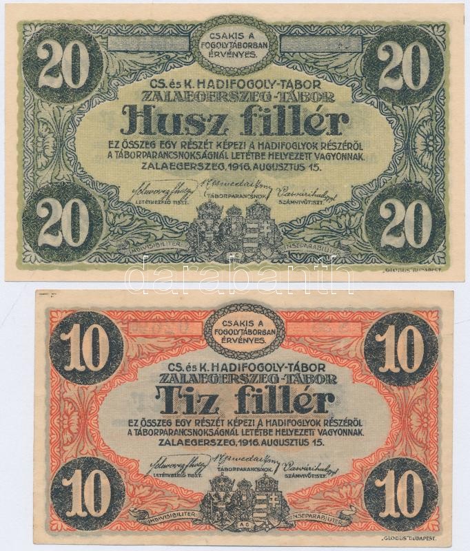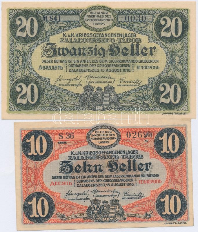Somorja / hadifogolytábor 1916.08.15. 10f sorozat előtt "S" és számozás után "Gy" jelzéssel + 20f + 50f + 1K + 2K + 5K + 10K + 20K mindegyik arab sorozat- és sorszámmal, "MS" jelzéssel T:I,I-, 10K II (hajtatlanok)