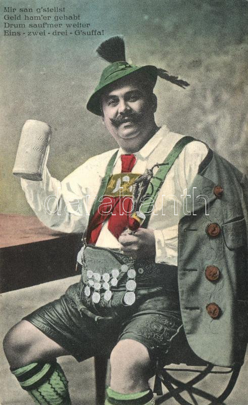 '...Eins - zwei - drei - G'suffa' German beer drinker, folklore