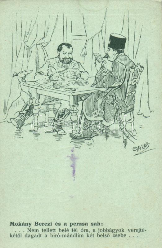https://www.darabanth.com/en/19-Major-auction/19.1/Thematic-postcards/Humour~6585/Mokany-Berci-es-a-perzsa-sah-nyomtatta-es-kiadja-Kner-Izidor-Gyoman-7-sorozat-s-Garay~II942150