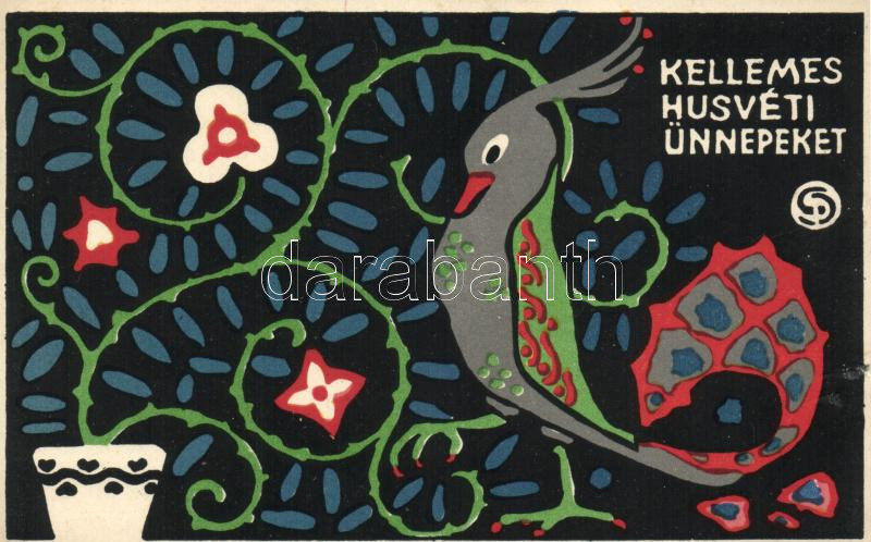 'Az Iparművészeti Iskola levelezőlapjai' Ungarische Werkstätte no. 2020. kiadja Rigler Rt. / Hungarian folklore, Easter greeting card