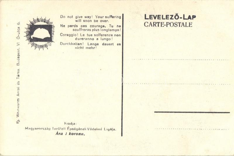 'Csak kitartás! Szenvedésed nem tart soká' kiadja Magyarország Területi Épségének Védelmi Ligája / Irredenta s: Sándor B.