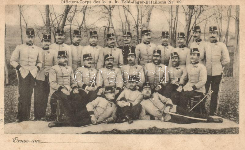 https://www.darabanth.com/en/19-Major-auction/19.1/Thematic-postcards/Militaria~6597/Officers-Corps-des-KuK-Feld-Jager-Bataillons-Nr-32-KuK-infantry-officers~II940613