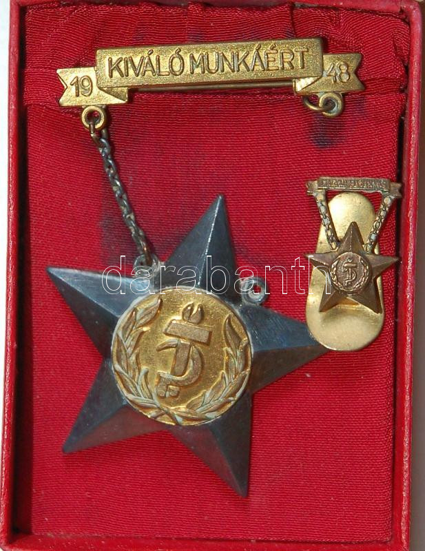 https://www.darabanth.com/en/190-Online-auction/190.0/Numismatics/Faleristics-medals-orders-badges~600016/1948-Kivalo-Munkaert-kituntetes-es-miniatur-gomlyukjelveny-tokban-T2-lanc-szakadt~II714025