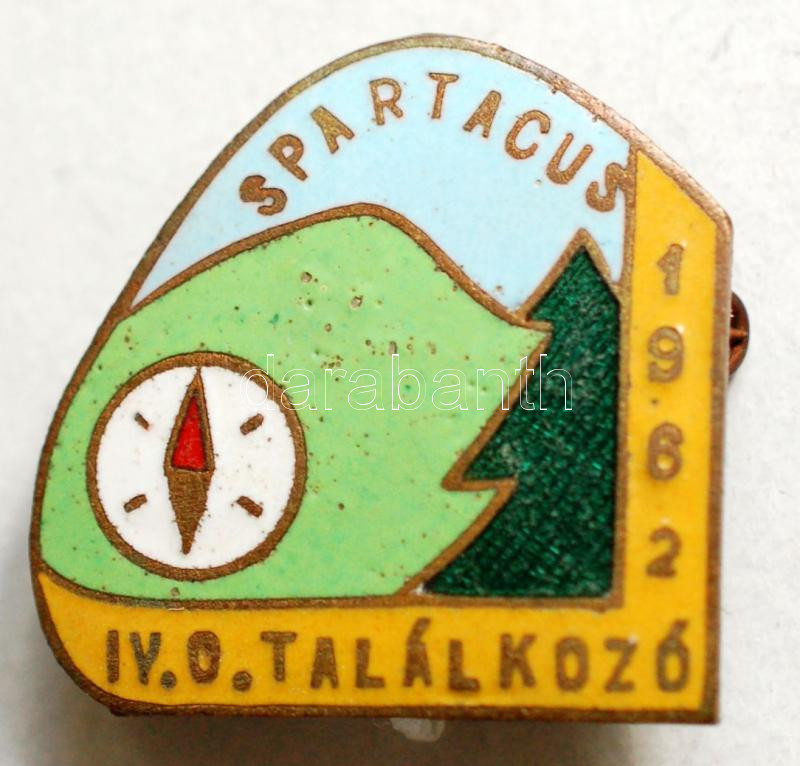 https://www.darabanth.com/en/190-Online-auction/190.0/Numismatics/Faleristics-medals-orders-badges~600016/1962-SPARTACUS-IV-Orszagos-Talalkozo-tuzzomancozott-Br-turista-jelveny-T1~II715405
