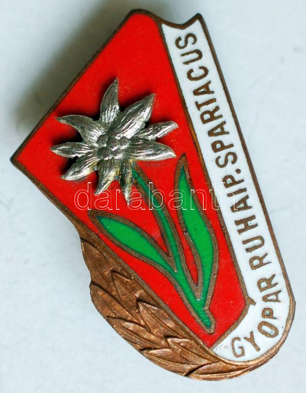 https://www.darabanth.com/en/190-Online-auction/190.0/Numismatics/Faleristics-medals-orders-badges~600016/7E1960-Gyopar-Ruhaipari-SPARTACUS-tuzzomancozott-Br-turista-jelveny-piros-zold-feher-T1~II715441