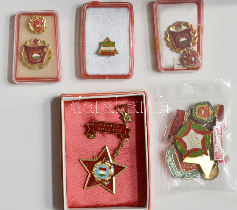 ~1970. "Szocialista Brigád" plasztiktokban miniatűrrel (2x) + "Szocialista Brigád" miniatűrrel (2x) + "Kiváló Ifjú Munkás" plasztiktokban + "Kiváló Társadalmi Munkáért" + "Kiváló Dolgozó" miniatűrrel dísztokban, lánc elszakadt + "Kiváló Dolgozó" miniatűrrel, medál levált T:vegyes