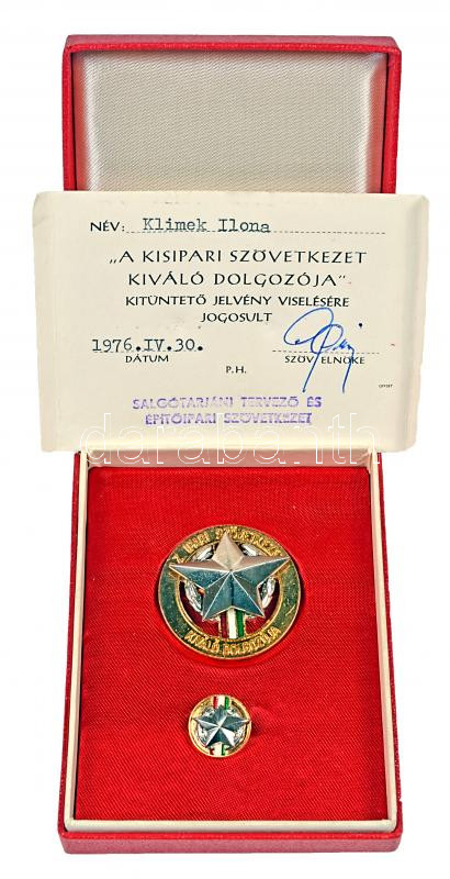 https://www.darabanth.com/en/190-Online-auction/190.0/Numismatics/Faleristics-medals-orders-badges~600016/7E1976-A-Kisipari-Szovetkezet-Kivalo-Dolgozoja-miniaturrel-disztokban-es-adomanyozoi-irat~II711220